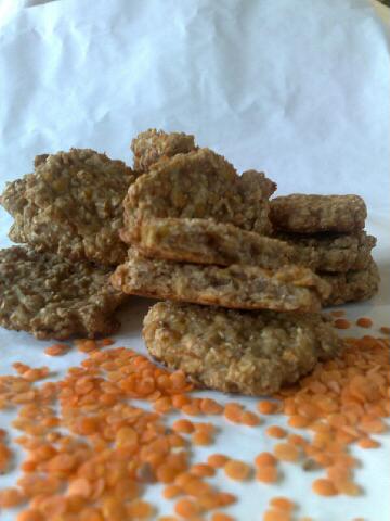 U onoj potrazi za nekim slatkim receptićem zavirila sam i u knjigu "Prirodno i slatko" , računam u makrobiotici bi se moglo naći nešto ovakvo. Nisam našla što sam tražila, ali sam stala na receptu za keksiće sa bundevom i odlučila bundevu zamjeniti lećom, onda sam zamjenila i još ponešto, pa malo dodala, malo oduzela, i zapravo dobila jedan sasvim drugi recept :) koji ide ovako: